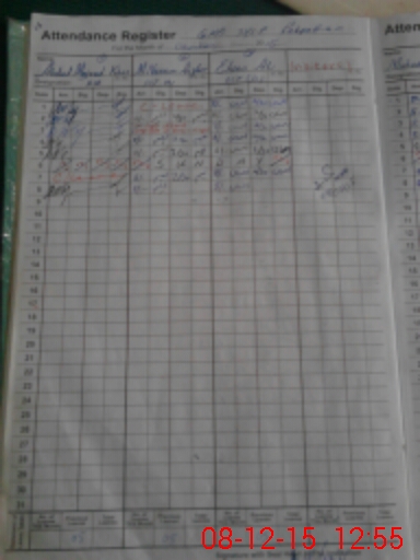 | CNIC | Full Name | Designation | R/C | Absence During Last Calender Month |