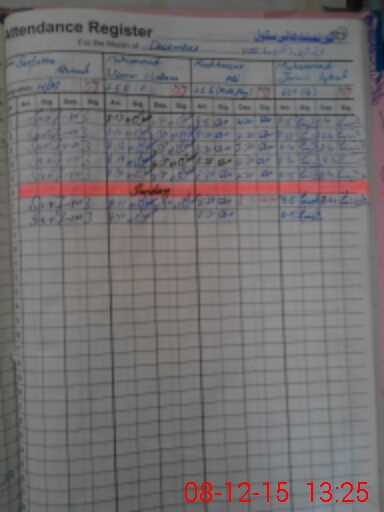 | CNIC | Full Name | Designation | R/C | Absence During Last Calender Month |