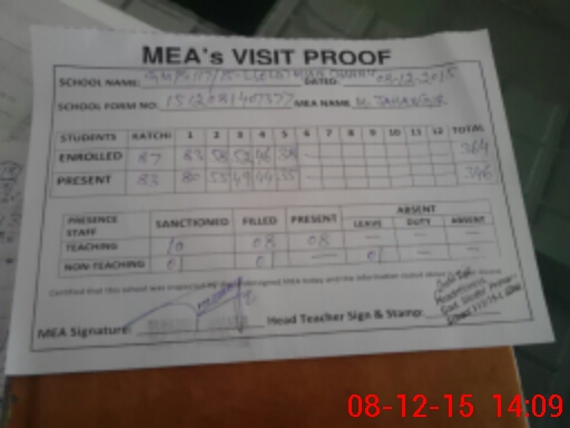 | Attendance Register | Head Teacher | MEA with School | Visit Proof |