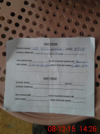 | Attendance Register | Head Teacher | MEA with School | Visit Proof |