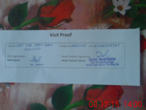 | Attendance Register | Head Teacher | MEA with School | Visit Proof |