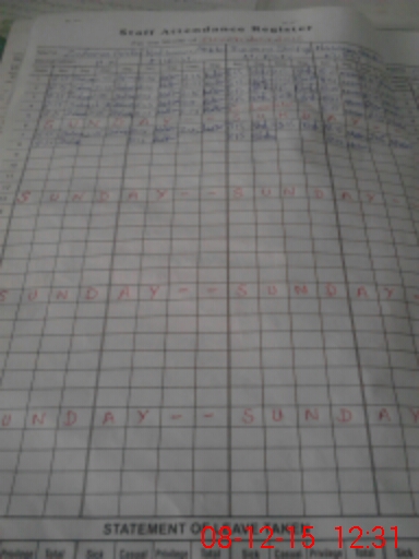 | CNIC | Full Name | Designation | R/C | Absence During Last Calender Month |