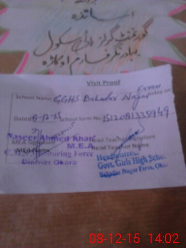 | EMIS Code: 39320114 | Name of School: GGHS BAHADAR NAGER FARM | |||