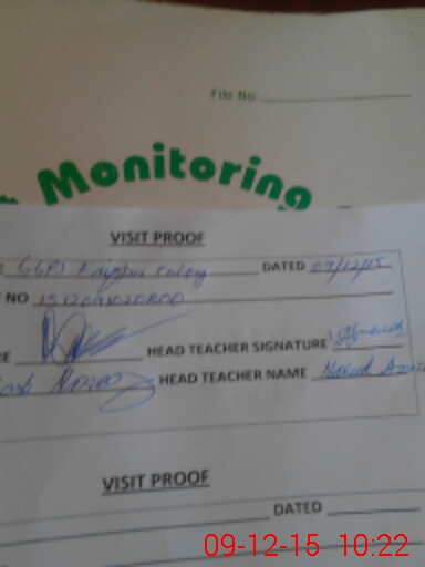 | Attendance Register | Head Teacher | MEA with School | Visit Proof |