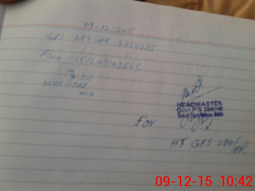| Name: MU**** RA**** Designation: (School Headmaster's/Headmistress's) PTC/JV Phone/Cell Number: 03**** |