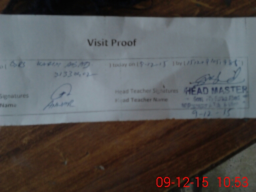 | Attendance Register | Head Teacher | MEA with School | Visit Proof |