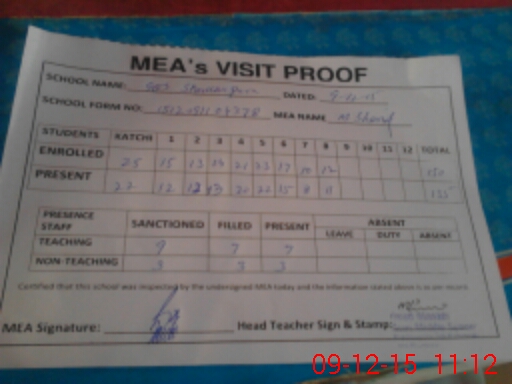 | Attendance Register | Head Teacher | MEA with School | Visit Proof |