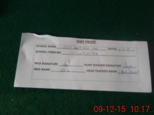 | Attendance Register | Head Teacher | MEA with School | Visit Proof |