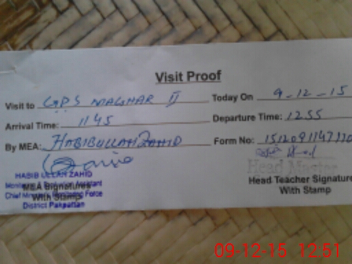 | Attendance Register | Head Teacher | MEA with School | Visit Proof |