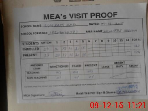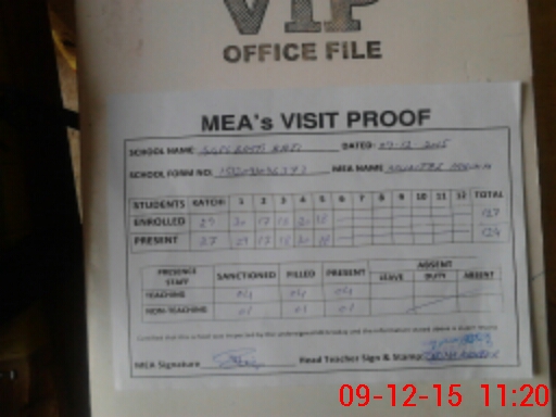 | Attendance Register | Head Teacher | MEA with School | Visit Proof |