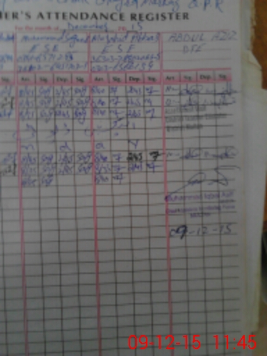 | CNIC | Full Name | Designation | R/C | Absence During Last Calender Month |
