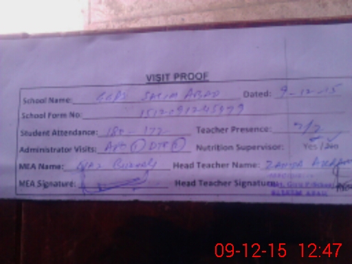 | Attendance Register | Head Teacher | MEA with School | Visit Proof |