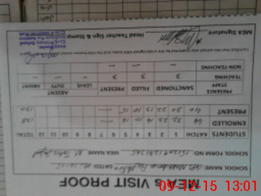 | Attendance Register | Head Teacher | MEA with School | Visit Proof |