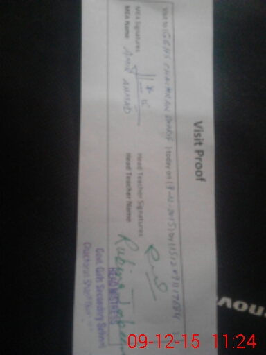 | School Visited by School Health & Nutrition Supervisor (No. of Visits) | 1 | Name1: | Javeed Iqbal | Name2: | Nil |