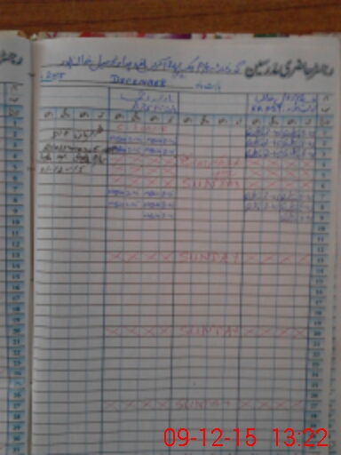 | CNIC | Full Name | Designation | R/C | Absence During Last Calender Month |