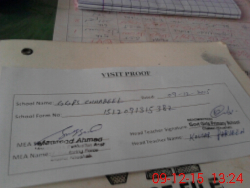 | Attendance Register | Head Teacher | MEA with School | Visit Proof |
