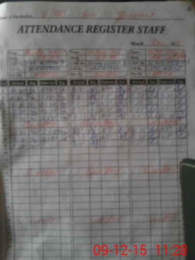 | CNIC | Full Name | Designation | R/C | Absence During Last Calender Month |