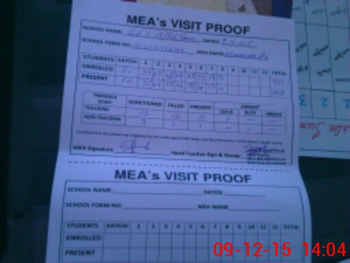 | Attendance Register | Head Teacher | MEA with School | Visit Proof |