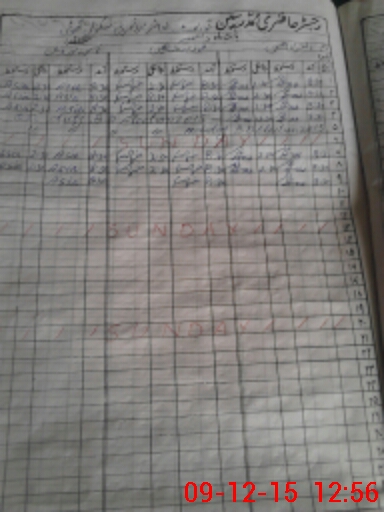 | CNIC | Full Name | Designation | R/C | Absence During Last Calender Month |
