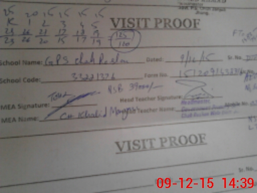 | Attendance Register | Head Teacher | MEA with School | Visit Proof |