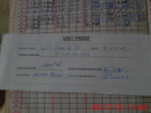 | Attendance Register | Head Teacher | MEA with School | Visit Proof |