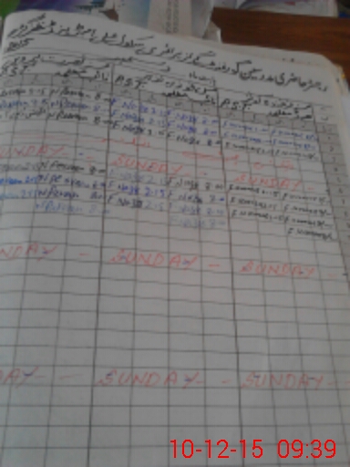 | CNIC | Full Name | Designation | R/C | Absence During Last Calender Month |