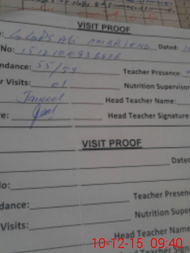 | Attendance Register | Head Teacher | MEA with School | Visit Proof |