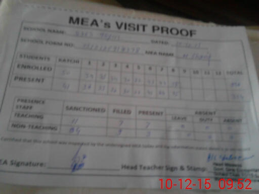 | Attendance Register | Head Teacher | MEA with School | Visit Proof |