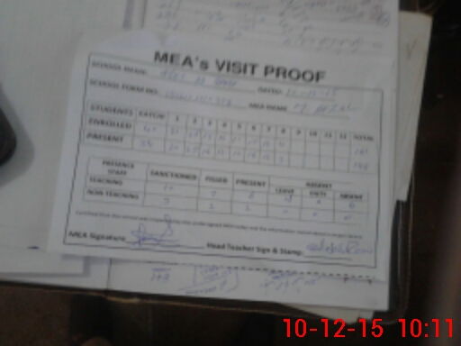 | Attendance Register | Head Teacher | MEA with School | Visit Proof |