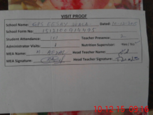 | EMIS Code: 32320738 | Name of School: GPS EESAY WALA | |||