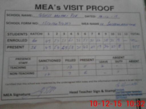 | Certified that this School was Inspected by the Undersigned MEA/DMO Today and the Information Stated Above is as Per Record. | |||||