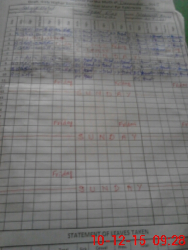 | CNIC | Full Name | Designation | R/C | Absence During Last Calender Month |