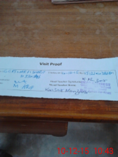 | Monitoring Date: 10-12-2015 | Start Time: 10-12-2015 10:19 AM | End Time: 10-12-2015 10:47 AM | Name of MEA: Kh**** Iq**** | |
