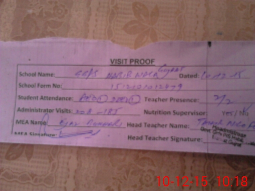 | Attendance Register | Head Teacher | MEA with School | Visit Proof |