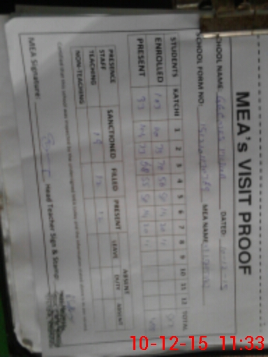 | Attendance Register | Head Teacher | MEA with School | Visit Proof |