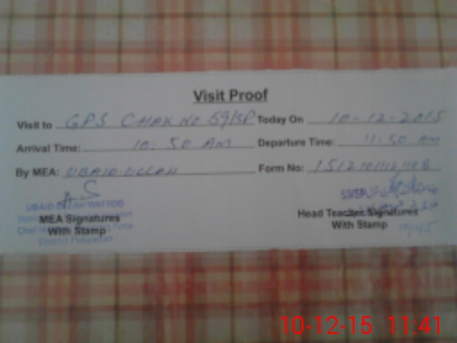 | Attendance Register | Head Teacher | MEA with School | Visit Proof |