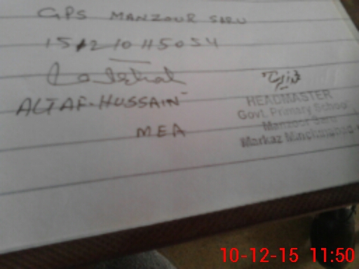 | EMIS Code: 31150200 | Name of School: GPS MANZOOR SARU | |||