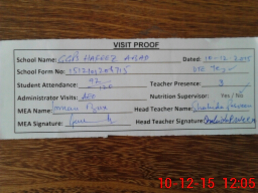 | Attendance Register | Head Teacher | MEA with School | Visit Proof |