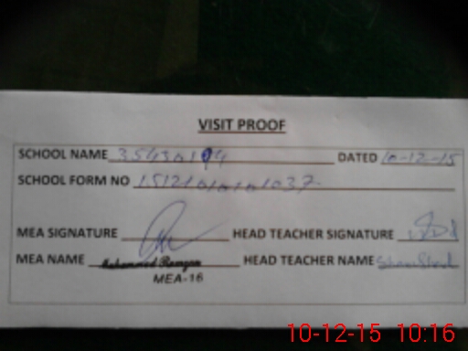 | Certified that this School was Inspected by the Undersigned MEA/DMO Today and the Information Stated Above is as Per Record. | |||||
