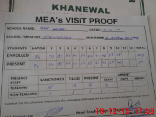| Certified that this School was Inspected by the Undersigned MEA/DMO Today and the Information Stated Above is as Per Record. | |||||