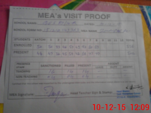 | Certified that this School was Inspected by the Undersigned MEA/DMO Today and the Information Stated Above is as Per Record. | |||||