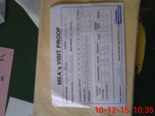 | Attendance Register | Head Teacher | MEA with School | Visit Proof |