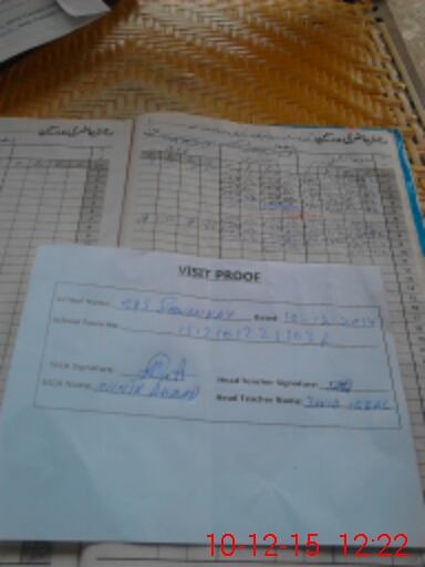 | Attendance Register | Head Teacher | MEA with School | Visit Proof |