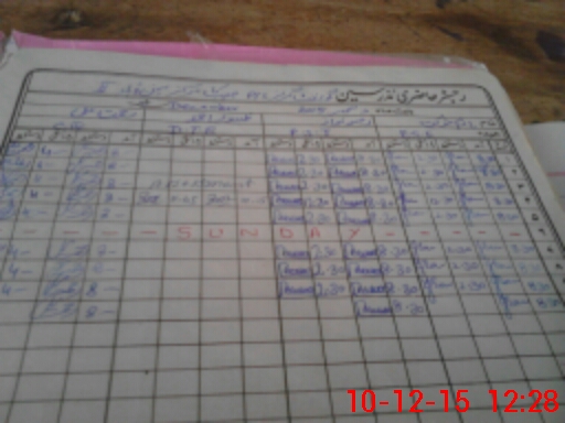| CNIC | Full Name | Designation | R/C | Absence During Last Calender Month |