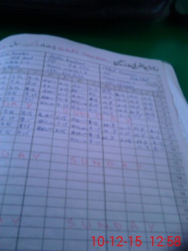 | CNIC | Full Name | Designation | R/C | Absence During Last Calender Month |