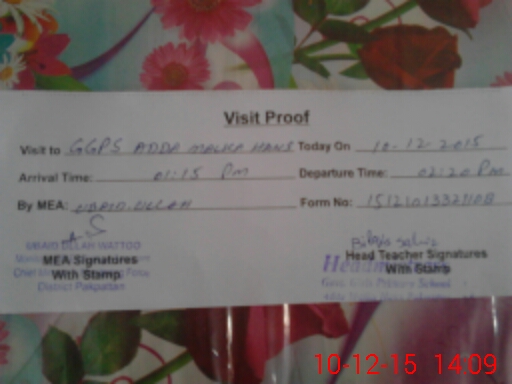 | Certified that this School was Inspected by the Undersigned MEA/DMO Today and the Information Stated Above is as Per Record. | |||||