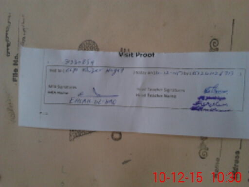 | Attendance Register | Head Teacher | MEA with School | Visit Proof |