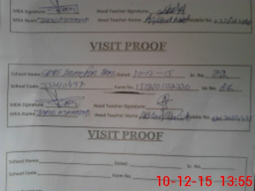 | School Visited by School Health & Nutrition Supervisor (No. of Visits) | 1 | Name1: | SAKHAWAT ALI | Name2: | |