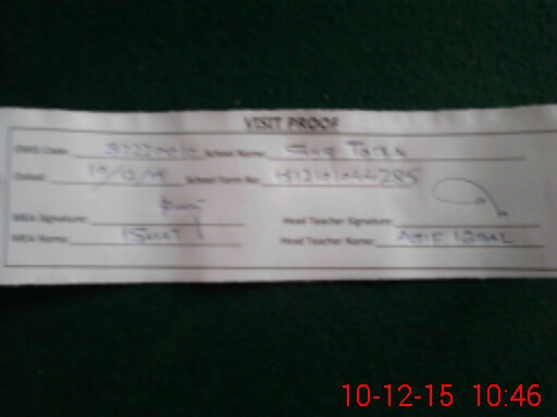 | Attendance Register | Head Teacher | MEA with School | Visit Proof |