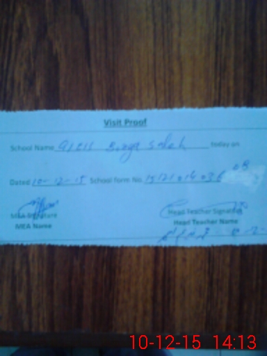 | Attendance Register | Head Teacher | MEA with School | Visit Proof |